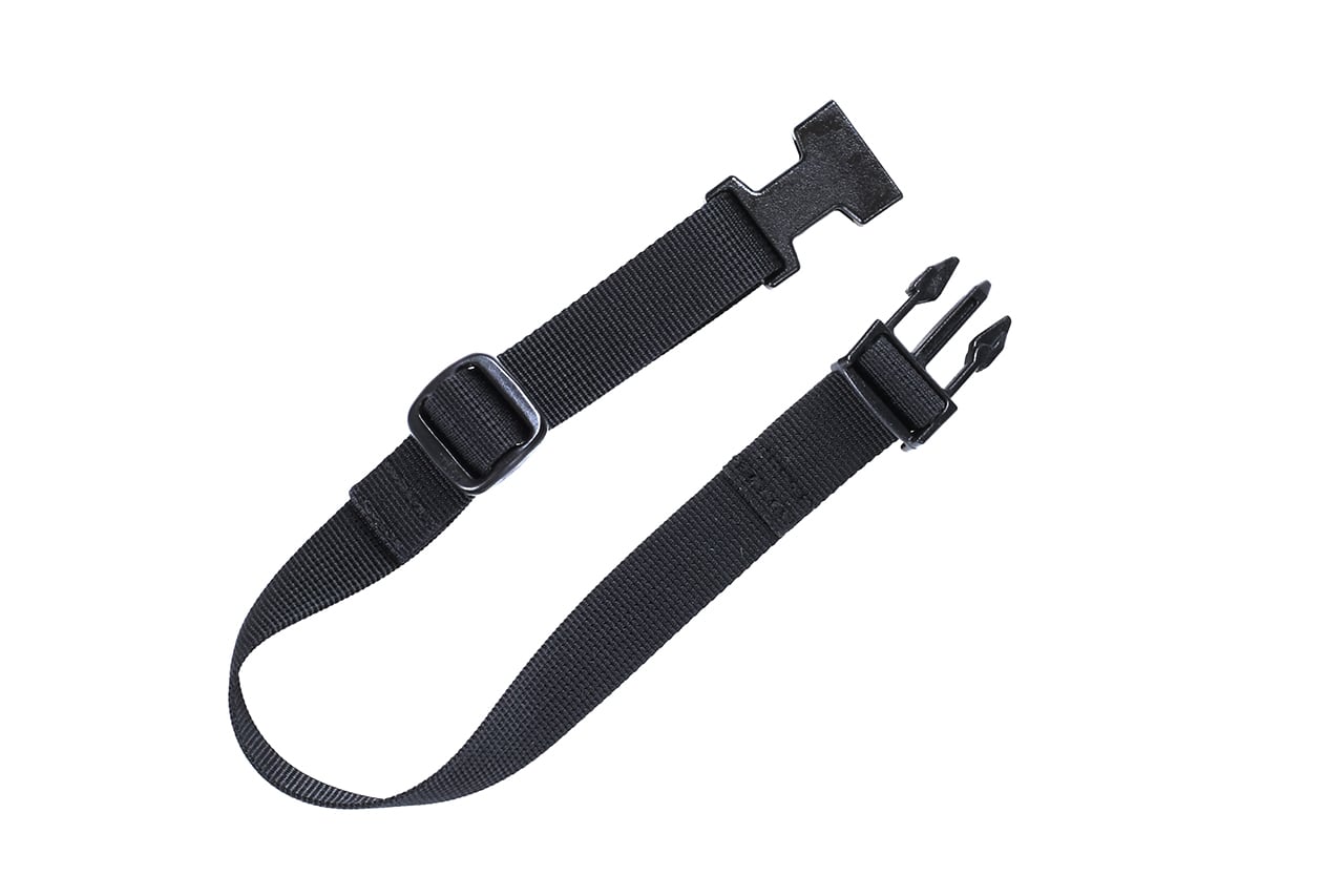ボトルケージに固定するための幅15mmのナイロン製ストラップが付属します。樹脂製のバックル式でワンタッチ着脱、樹脂製のコキで長さを調節できます(最長35cm)。樹脂パーツはいずれもnifco社製。